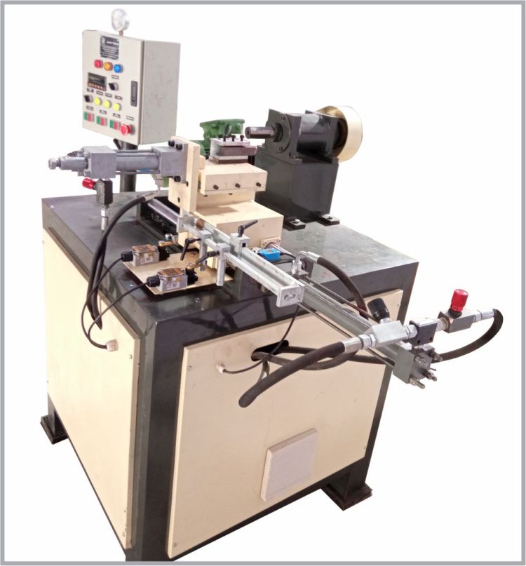 - Simple buffing machine developed for finishing of flat walled or flat base products.